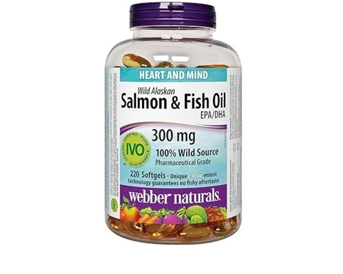 امگا فیش اویل و سالمون وحشی آلاسکا و روغن ماهی برند وبر نچرالز 300 میلی گرم 220 تایی
