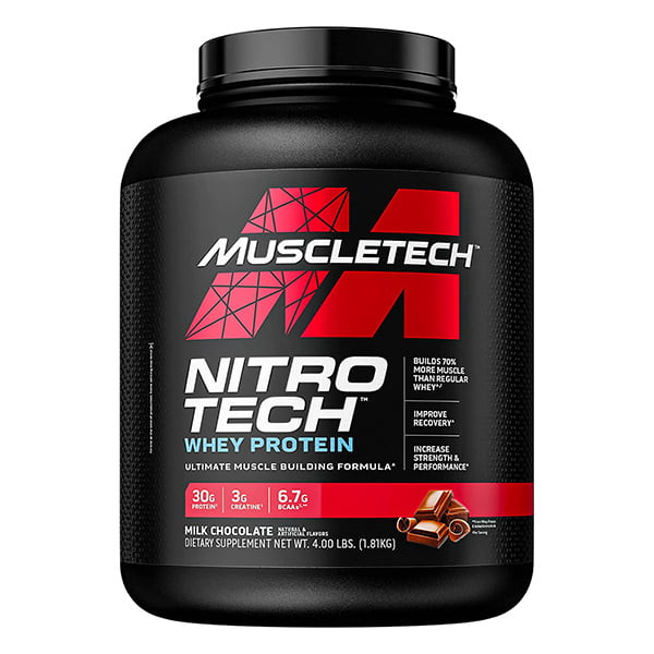 مکمل نیتروتک وی پروتیین ماسل تک حاوی پودر پروتیین وی است که از آب پنیر صد در صد گرفته شده است و پروتیین کافی برای رشد عضلات را به صورت روزانه تامین می کند. این مکمل موجب افزایش قدرت بدنی و عضلات و افزایش رشد ماهیچه ها بدون چربی می گردد.
